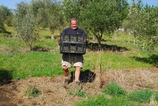 Every year since 2000 (the first planting) the family have taken a photo by a tree. Originally a newly planted stick, it is now a large tree. Things have changed a lot since that first photograph. The historical record shows changes over time and an album stores the proof. This year we were taking part out of community tradition rather than necessity. The olives are now so prolific that Mike can afford to bring in professional pickers (who are no doubt far faster than us).